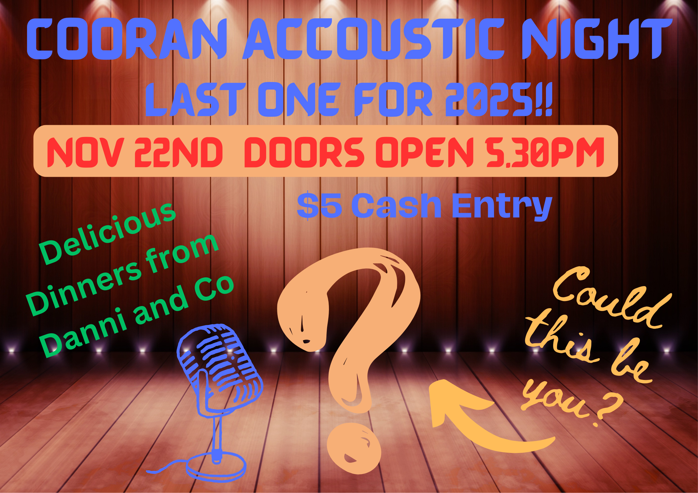 If you would like to start running the Cooran Acoustic night or become part of the team, please text the following: